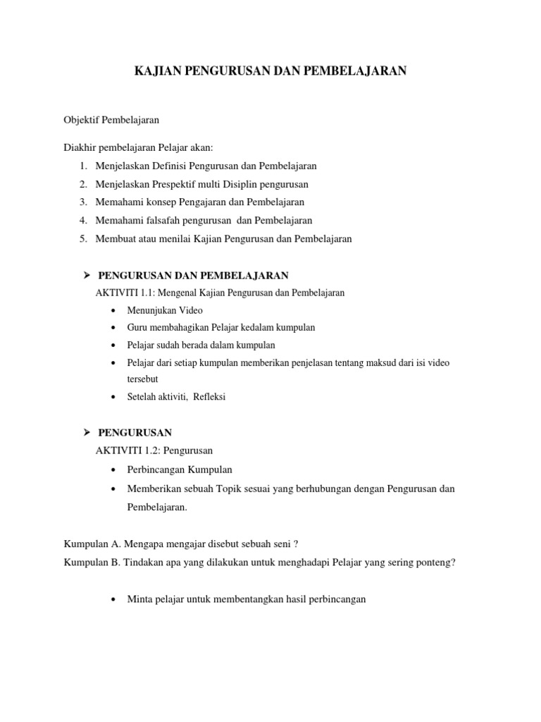 Sistem Pengurusan Pembelajaran Program from img.yumpu.com Saya juga mengetahui tentang pengurusan pelbagai budaya. Cara pengajaran dan pembelajaran yang dilaksanakan di dalam kelas bagi pelajar ini ialah pendekatan multi sensori. Norsyahfina azlina binti saharuddin d20172080645 rumusan topik 2 : Kajian pengurusan dan pembelajaran pelajar. Topik 2 kajian pengurusan dan pembelajaran pelajar. Interaksi dalam pengurusan pembelajaran apakah maksud interaksi? Sesungguhnya, sistem bimbingan dan penasihatan yang cekap dan berkesan mampu melahirkan pelajar yang seimbang dari segi intelek, jasmani, emosi dan rohani. Pelbagai pilihan pembelajaran dibangunkan supaya pelajar dapat.